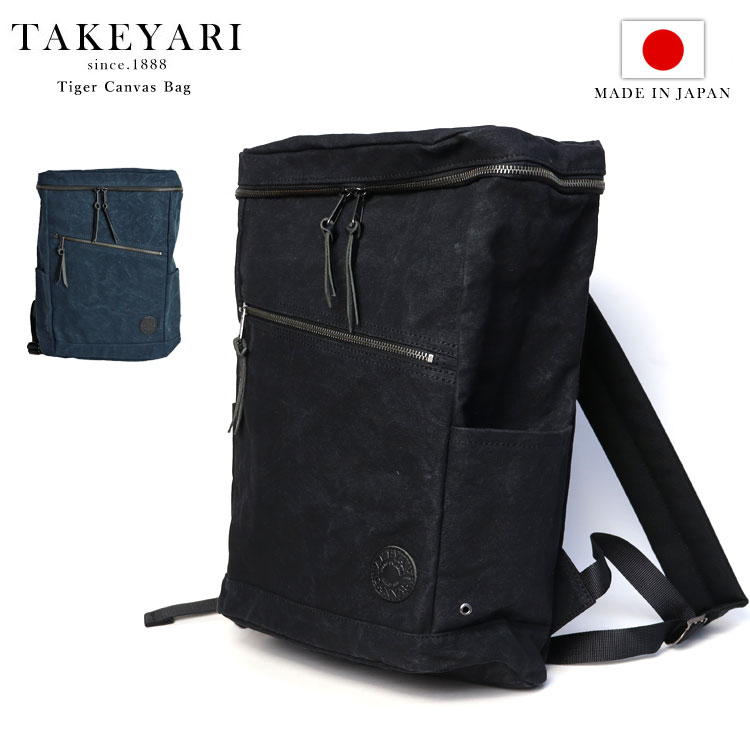 TAKEYARI タケヤリ 倉敷帆布 ビジネス リュック 大容量 メンズ キャンバス ボックス型 スクエア 日本製 20L A4 ノートPC ラップトップ バックパック 撥水 タイガー帆布 ブラック ネイビー 送料無料 レディース ギフト プレゼント