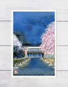 二条城 北大手門 [ 京都の桜 ライトアップ ]( 春 夜景 さくら 城 門 和風 水彩画 風景画 )★当店オリジナル★
