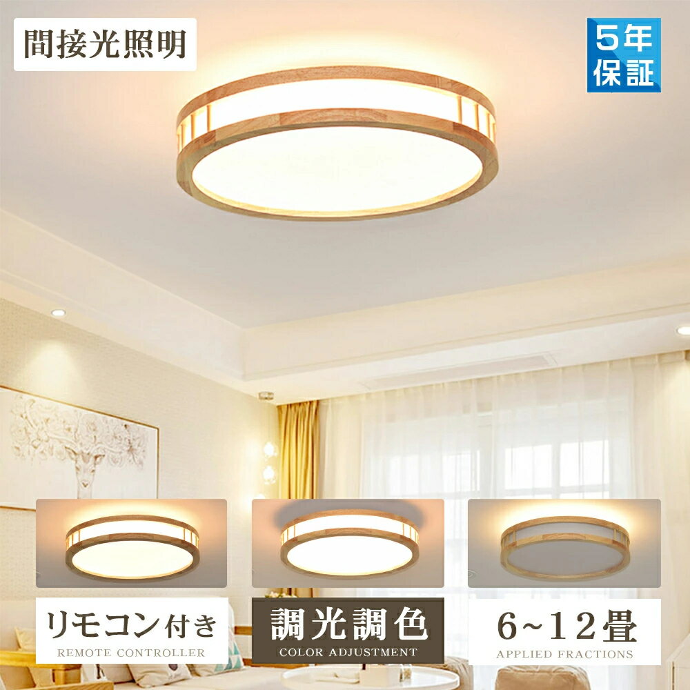 シーリングライト LED 調光調色 リモコン おしゃれ アッパーライト 6畳 8畳 12畳 間接照明 ナイトライト 電気 常夜灯 北欧 明るい シーリングランプ 照明 天井照明 ライト 天然木 リビング 子供部屋 寝室 和室 洋室 玄関 安い 5年保証