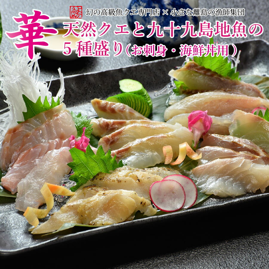 【よか魚の刺身シリーズ華】天然クエと九十九島地魚の5種盛り(お刺身・海鮮丼用)お刺身で3~4人前。海鮮丼(ご飯茶碗)で8人分 プロトン プロトン凍結 あす楽 プレゼント ギフト クエ 真鯛 bf