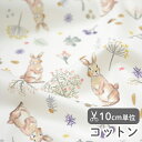 うさぎ 生地 布 入園 入学 北欧風 コットン 幅109cm ≪Milky rabbit≫ 【10cm単位販売】 うさぎ柄 ウサギ柄 女の子 動物 生成 かわいい 可愛い 韓国 キャラクター コットン おしゃれ 動物柄 ナチュラル ガーリー ミルキーラビット