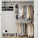 収納力アップ 2段ハンガー 伸縮式 山崎実業 高さ5段階調整 ホワイト ブラック 幅伸縮 クローゼット 2段化 ハンガーバー 引っかけ シンプル 便利 収納 整理 拡張 スマート smart 5678 白 黒 小物 帽子 カバン 掛ける 子供 お子様 キッズ フック