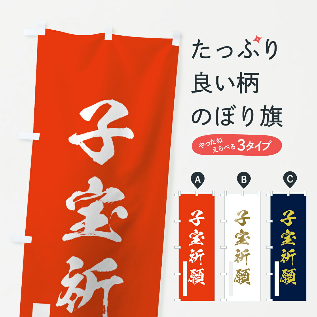 グッズプロののぼり旗は「節約じょうずのぼり」から「セレブのぼり」まで細かく調整できちゃいます。のぼり旗にひと味加えて特別仕様に一部を変えたい店名、社名を入れたいもっと大きくしたい丈夫にしたい長持ちさせたい防炎加工両面別柄にしたい飾り方も選べます壁に吊るしたい全面柄で目立ちたい紐で吊りたいピンと張りたいチチ色を変えたいちょっとおしゃれに看板のようにしたい祈願のぼり旗、他にもあります。【全国送料360円】 のぼり旗 子宝祈願・神社・仏閣のぼり 4229 内容・記載の文字子宝祈願・神社・仏閣印刷自社生産 フルカラーダイレクト印刷またはシルク印刷デザイン【A】【B】【C】からお選びください。※モニターの発色によって実際のものと色が異なる場合があります。名入れ、デザイン変更(セミオーダー)などのデザイン変更が気楽にできます。以下から別途お求めください。サイズサイズの詳細については上の説明画像を御覧ください。ジャンボにしたいのぼり重量約80g素材のぼり生地:ポンジ(テトロンポンジ)一般的なのぼり旗の生地通常の薄いのぼり生地より裏抜けが減りますがとてもファンが多い良い生地です。おすすめA1ポスター:光沢紙(コート紙)チチチチとはのぼり旗にポールを通す輪っかのことです。のぼり旗が裏返ってしまうことが多い場合は右チチを試してみてください。季節により風向きが変わる場合もあります。チチの色変え※吊り下げ旗をご希望の場合はチチ無しを選択してください対応のぼりポール一般的なポールで使用できます。ポールサイズ例:最大全長3m、直径2.2cmまたは2.5cm※ポールは別売りです ポール3mのぼり包装1枚ずつ個別包装 PE袋(ポリエチレン)包装時サイズ:約20x25cm横幕に変更横幕の画像確認をご希望の場合は、決済時の備考欄に デザイン確認希望 とお書き下さい。※横幕をご希望でチチの選択がない場合は上のみのチチとなります。ご注意下さい。のぼり補強縫製見た目の美しい四辺ヒートカット仕様。ハトメ加工をご希望の場合はこちらから別途必要枚数分お求め下さい。三辺補強縫製 四辺補強縫製 棒袋縫い加工のぼり防炎加工特殊な加工のため制作にプラス2日ほどいただきます。防炎にしたい・商標権により保護されている単語ののぼり旗は、使用者が該当の商標の使用を認められている場合に限り設置できます。・設置により誤解が生じる可能性のある場合は使用できません。(使用不可な例 : AEDがないのにAEDのぼりを設置)・裏からもくっきり見せるため、風にはためくために開発された、とても薄い生地で出来ています。・屋外の使用は色あせや裁断面のほつれなどの寿命は3ヶ月〜6ヶ月です。※使用状況により異なり、屋内なら何年も持ったりします。・雨風が強い日に表に出すと寿命が縮まります。・濡れても大丈夫ですが、中途半端に濡れた状態でしまうと濡れた場所と乾いている場所に色ムラが出来る場合があります。・濡れた状態で壁などに長時間触れていると色移りをすることがあります。・通行人の目がなれる頃(3ヶ月程度)で違う色やデザインに替えるなどのローテーションをすると効果的です。・特別な事情がない限り夜間は店内にしまうなどの対応が望ましいです。・洗濯やアイロン可能ですが、扱い方により寿命に影響が出る場合があります。※オススメはしません自己責任でお願いいたします。色落ち、色移りにご注意ください。商品コード : 4229問い合わせ時にグッズプロ楽天市場店であることと、商品コードをお伝え頂きますとスムーズです。改造・加工など、決済備考欄で商品を指定する場合は上の商品コードをお書きください。ABC【全国送料360円】 のぼり旗 子宝祈願・神社・仏閣のぼり 4229 安心ののぼり旗ブランド 「グッズプロ」が制作する、おしゃれですばらしい発色ののぼり旗。デザインを3色展開することで、カラフルに揃えたり、2色を交互にポンポンと並べて楽しさを演出できます。文字を変えたり、名入れをしたりすることで、既製品とは一味違う特別なのぼり旗にできます。 裏面の発色にもこだわった美しいのぼり旗です。のぼり旗にとって裏抜け(裏側に印刷内容が透ける)はとても重要なポイント。通常のぼり旗は表面のみの印刷のため、風で向きが変わったときや、お客様との位置関係によっては裏面になってしまう場合があります。そこで、当店ののぼり旗は表裏の見え方に差が出ないように裏抜けにこだわりました。裏抜けの美しいのグッズプロののぼり旗は裏面になってもデザインが透けて文字や写真がバッチリ見えます。裏抜けが悪いと裏面が白っぽく、色あせて見えてしまいズボラな印象に。また視認性が悪く文字が読み取りにくいなどマイナスイメージに繋がります。いろんなところで使ってほしいから、追加料金は必要ありません。裏抜けの美しいグッズプロののぼり旗でも、風でいつも裏返しでは台無しです。チチの位置を変えて風向きに沿って設置出来ます。横幕はのぼり旗と同じデザ