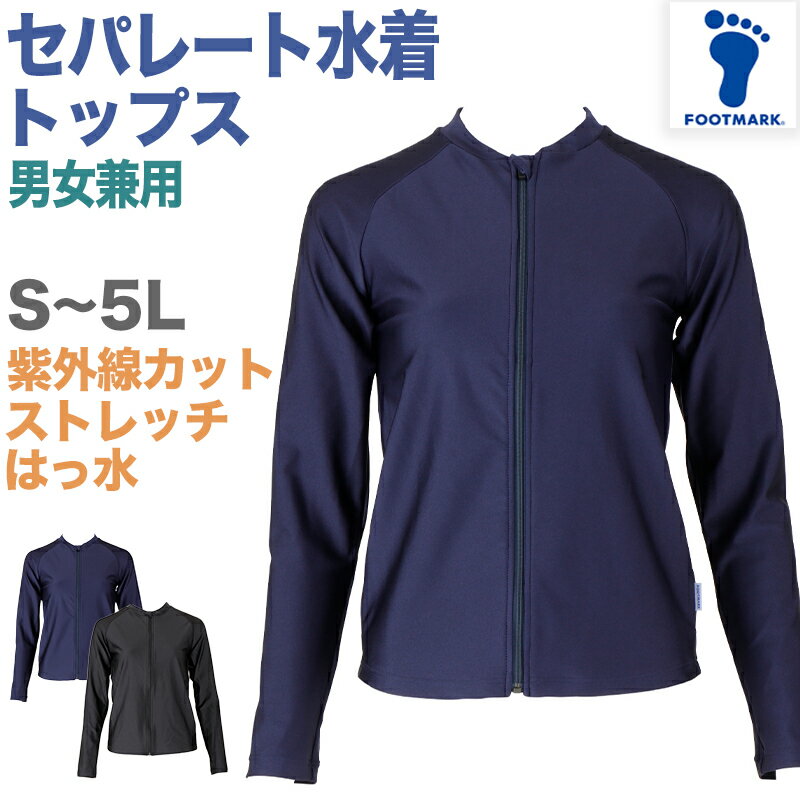セパレート水着 トップス 上だけ 男女兼用 フットマーク 男の子 女の子 ジェンダーレス プール学習 小学生 中学生 ファスナー UPF50+ UVカット スイミング 子ども ジュニア スイムウェア 水泳 学校 授業 海水浴 マリンスポーツ S M L LL 3L 4L 5L 120cm〜4L