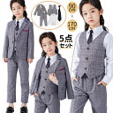 \楽天スーパーセール5点セット 入学式 卒業式 フォーマルスーツ 女の子 パンツスーツ 90cm-170cm 子供 チェック柄 小学生 冠婚葬祭 卒服 ジュニアスーツ 女児 子供スーツ ジャケット 白シャツ ベスト パンツ ネクタイ付き グレー 七五三 お受験 発表会