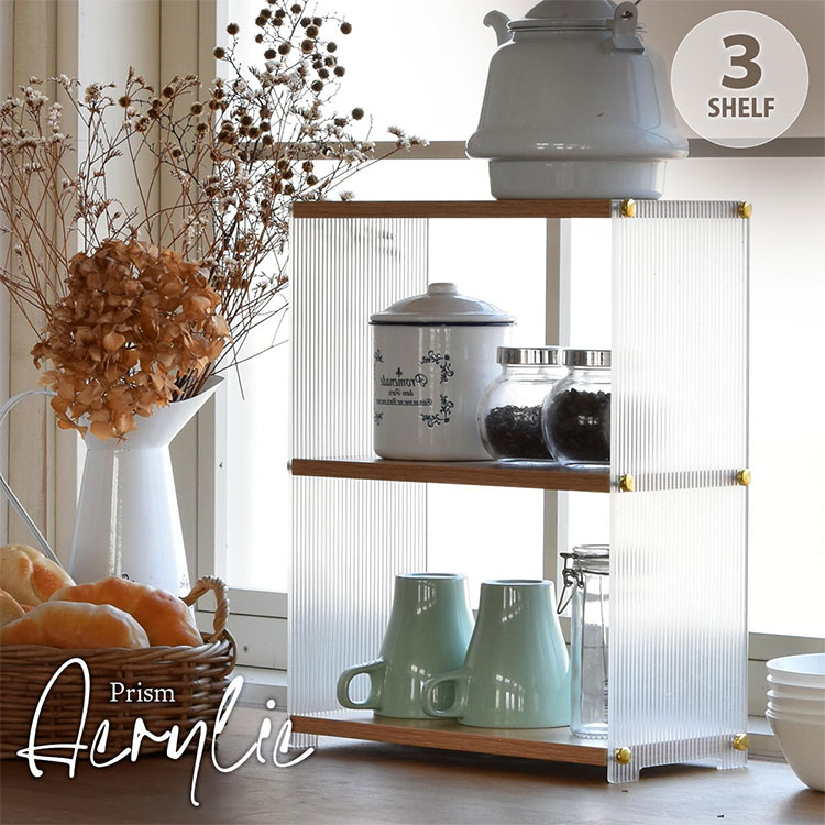 Prism Acrylic アクリル 収納棚 3段 オープンシェルフ×デスク&キッチン活用アクリル収納棚 オープンタイプ 収納 デスク上ラック 小物整理棚 卓上収納ラック 調味料ラック【ポイント10倍】【送料無料】