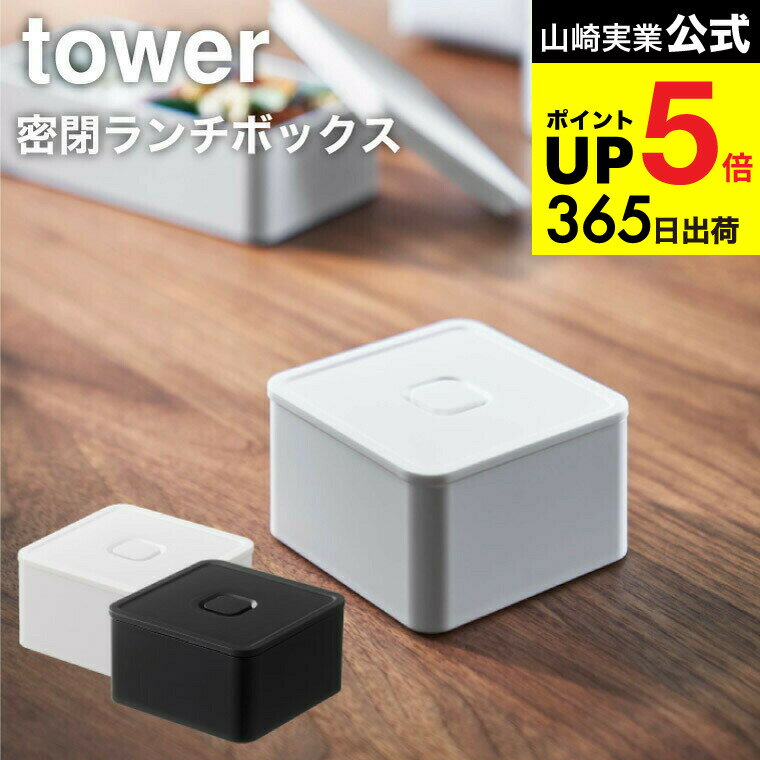 2個送料無料[ バルブ付き密閉ランチボックス タワー スクエア ] 山崎実業 公式 tower ホワイト/ブラック 5411 5412 弁当箱 お弁当 お弁当箱 フルーツ 果物 電子レンジ 食洗機 可 食品保存 タワーシリーズ JGS 最強配送 dej cpj