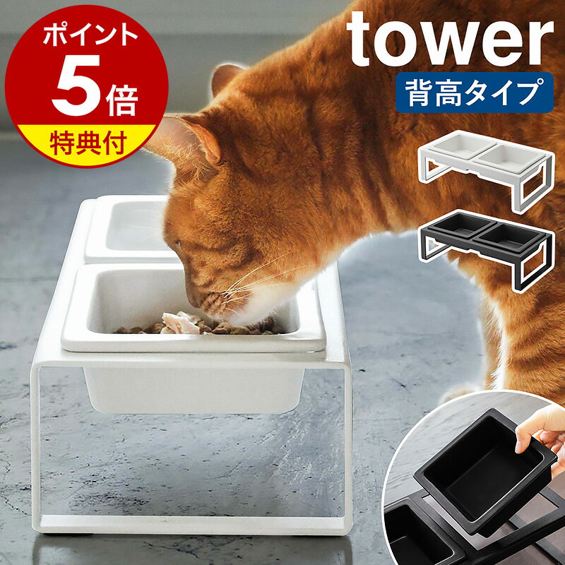 【特典付き】[ ペットフードボウルスタンドセット トール タワー ]山崎実業 tower ペットフード 猫 犬 フードボール フードボウル 食器台 おしゃれ ペット 餌皿 エサ皿 餌入れ エサ入れ 器 ご飯 ネコ イヌ 陶器 yamazaki ブラック ホワイト 4744 4745 公式