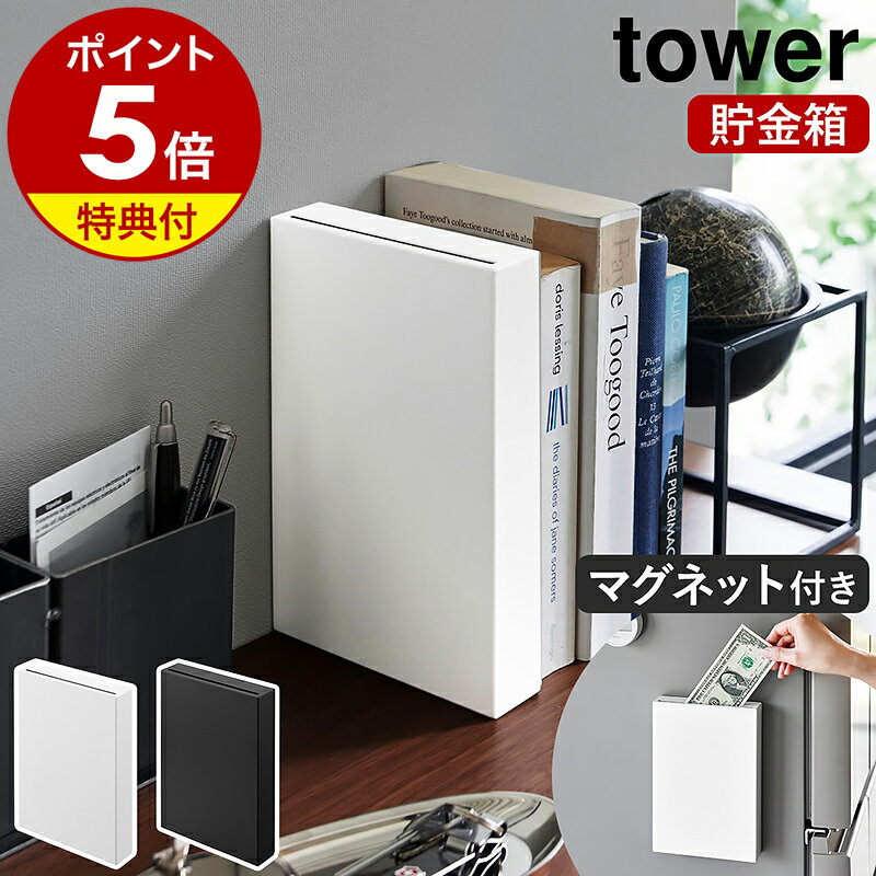 【特典付き】[ マグネット貯金箱 タワー ] 山崎実業 tower お札も入る 磁石 壁面設置 冷蔵庫横 デスク上 お札 お礼 ご祝儀 シンプル 北欧 おしゃれ yamazaki 公式 モノトーン ブラック ホワイト 1909 1910【ポイント5倍 送料無料】