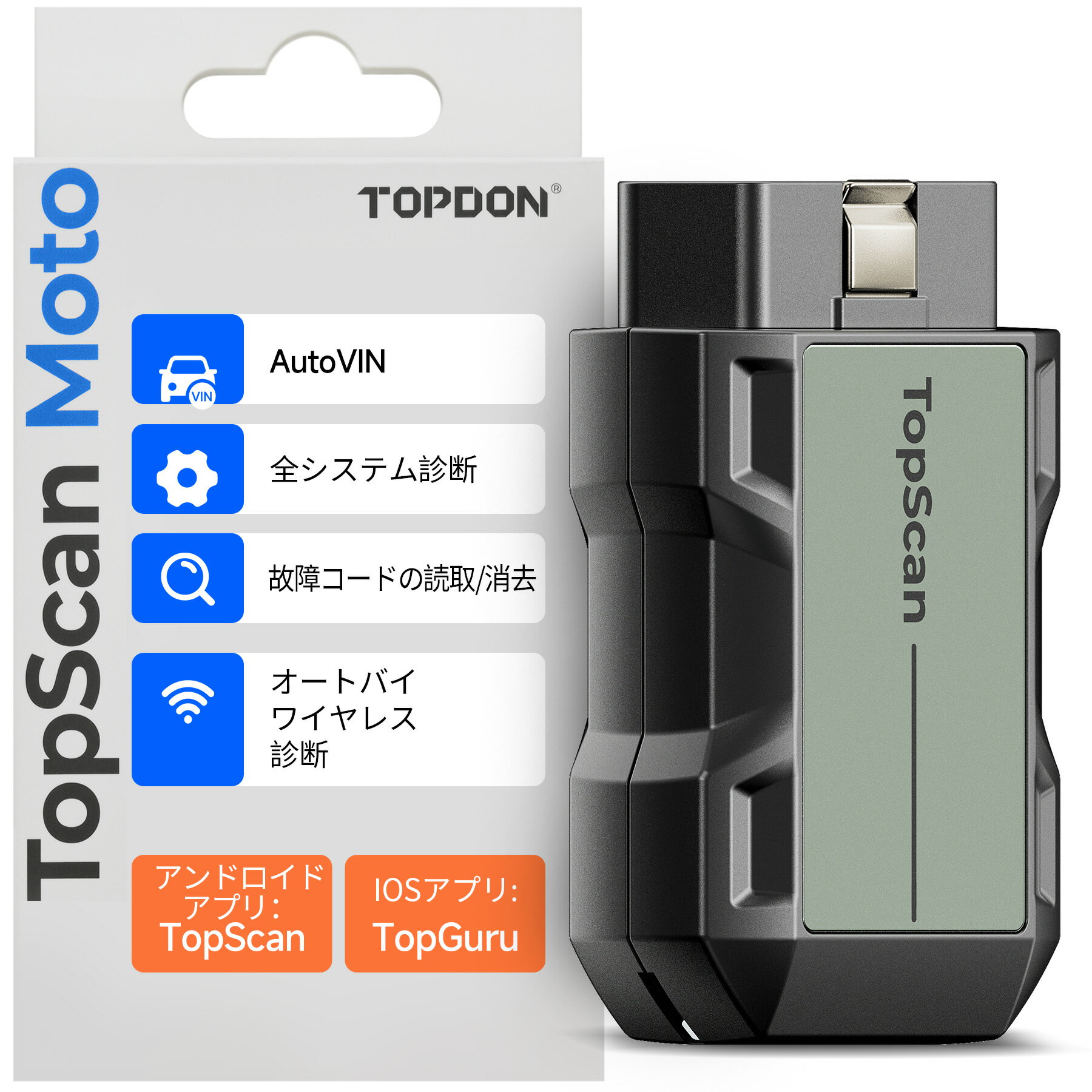 TOPDON TopScan Moto OBD2 診断機 バイク用、ハーレー/ドゥカティ/b.m.w/川崎/鈴木/ヤマハ/ホンダバイク対応、全システム診断、ホットリセット機能、ワイヤレスオートバイOBD2故障診断機、データストリーム付きバイクスキャンツール