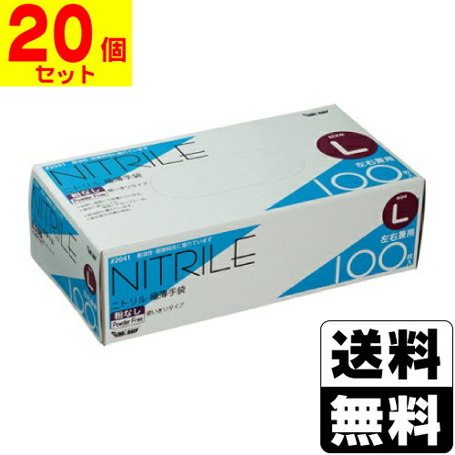 [川西工業]2041 ニトリル 使いきり極薄手袋 粉無 100枚入 Lサイズ【20個セット】