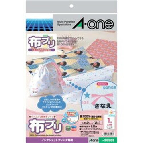 対応プリンタ【インクジェット顔染】 手芸感覚で楽しめる、印刷可能な布製シート。(A4サイズ・2枚) ■手芸感覚で楽しめる、印刷可能な綿100%の布製シートです。 ■特殊加工技術で文字やイラストがにじまず、くっきり鮮やかに印刷できます。 ■洗濯OK!色が落ちにくい加工を施しています。 ※顔料インクでは、表面素材の特性上、インクが乾きにくいので、印刷面にはできるだけ触れないようにしてください。 A-one (エーワン) 30503 (布プリ/生地タイプ/のりなし/A4/ノーカット/2シート)