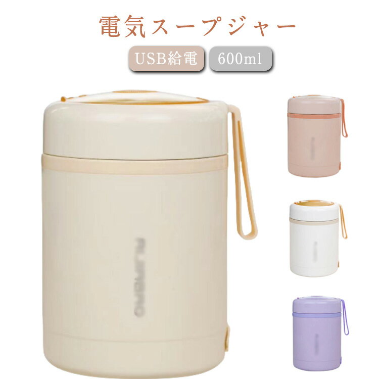 【電気スープジャー】電熱で温められる! 600mlUSBプラグでスープジャーで、スープを一番美味しい状態で温めてくれます。汁漏れしない構造で安心、しかも丸洗い出来ます。食品用のステンレス鋼を使っているので安全で耐久性も抜群。シンプルなデザインで軽量設計なので持ち運びが簡単できます。 サイズ F サイズについての説明 直径97mm 高さ150mm 素材 プラスチック ステンレス 色 ピンク ベージュ ホワイト パープル 備考 ●サイズ詳細等の測り方はスタッフ間で統一、徹底はしておりますが、実寸は商品によって若干の誤差(1cm~3cm )がある場合がございますので、予めご了承ください。 ●製造ロットにより、細部形状の違いや、同色でも色味に多少の誤差が生じます。 ●パッケージは改良のため予告なく仕様を変更する場合があります。 ▼商品の色は、撮影時の光や、お客様のモニターの色具合などにより、実際の商品と異なる場合がございます。あらかじめ、ご了承ください。 ▼生地の特性上、やや匂いが強く感じられるものもございます。数日のご使用や陰干しなどで気になる匂いはほとんど感じられなくなります。 ▼同じ商品でも生産時期により形やサイズ、カラーに多少の誤差が生じる場合もございます。 ▼他店舗でも在庫を共有して販売をしている為、受注後欠品となる場合もございます。予め、ご了承お願い申し上げます。 ▼出荷前に全て検品を行っておりますが、万が一商品に不具合があった場合は、お問い合わせフォームまたはメールよりご連絡頂けます様お願い申し上げます。速やかに対応致しますのでご安心ください。