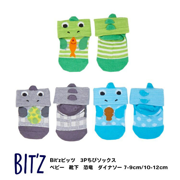 【Bit'zビッツ 3Pちびソックス ベビー 赤ちゃん 靴下 恐竜 ダイナソー 7-9cm/10-12cm】[Bit'z ビッツ ベビーソックス 赤ちゃん ベビーグッズ ベビー用品 育児グッズ 女児 男児 かわいい 出産祝い ギフト 誕生日祝い 出産準備]