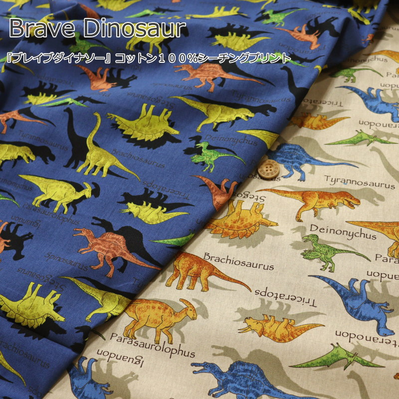 [合計1m以上で送料無料][Dinosaur] 生地 北欧風 布 シーチング 北欧 お洒落 ダイナソー 恐竜 三角 大柄