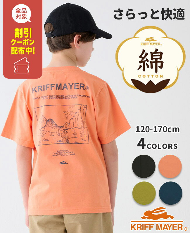 【ブランド直営】楽LUCK T ダイナソー [120cm~170cm] Tシャツ 半袖 カットソー 綿 綿100 コットン バックプリント 恐竜 アウトドア シンプル 小学生 中学生 夏 キッズ 子供服 KRIFF MAYER KIDS クリフメイヤーキッズ 【ブラックフライデー 2025】