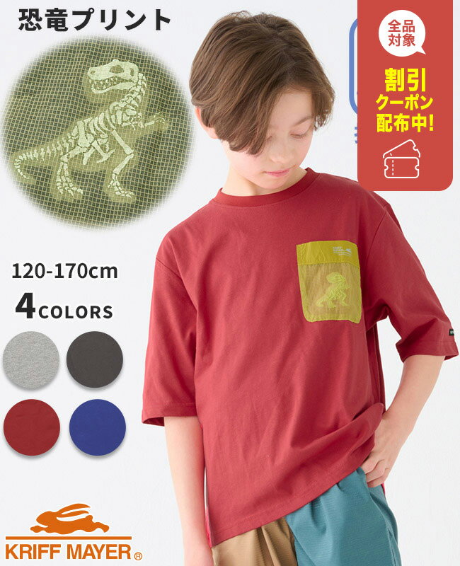 【ブランド直営】接触冷感 白亜 ゆる T [120cm~170cm] Tシャツ カットソー 吸水 速乾 涼しい 恐竜 ダイナソー ポケット ストレッチ 小学生 中学生 夏 春 秋 キッズ 子供服 KRIFF MAYER KIDS クリフメイヤーキッズ【2025SS】 【ブラックフライデー 2025】