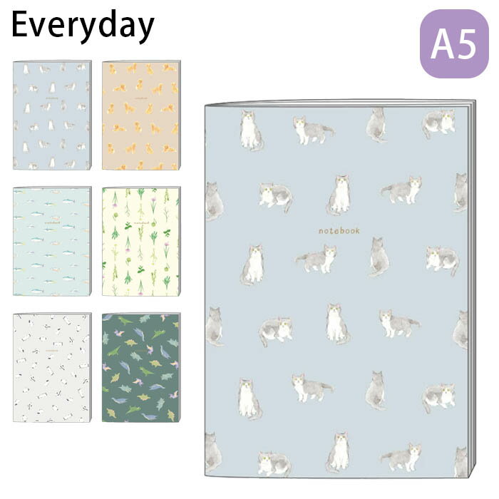 \P2倍+クーポン/EVERYDAY NOTEBOOK エブリデイノート A5|おしゃれ かわいい 高校生 中学生 入学 シンプル 動物 犬 猫 クマ 花 スズラン ミモザ フラワー 方眼 魚 シマエナガ 恐竜 ダイナソー |MATOKA マトカ
