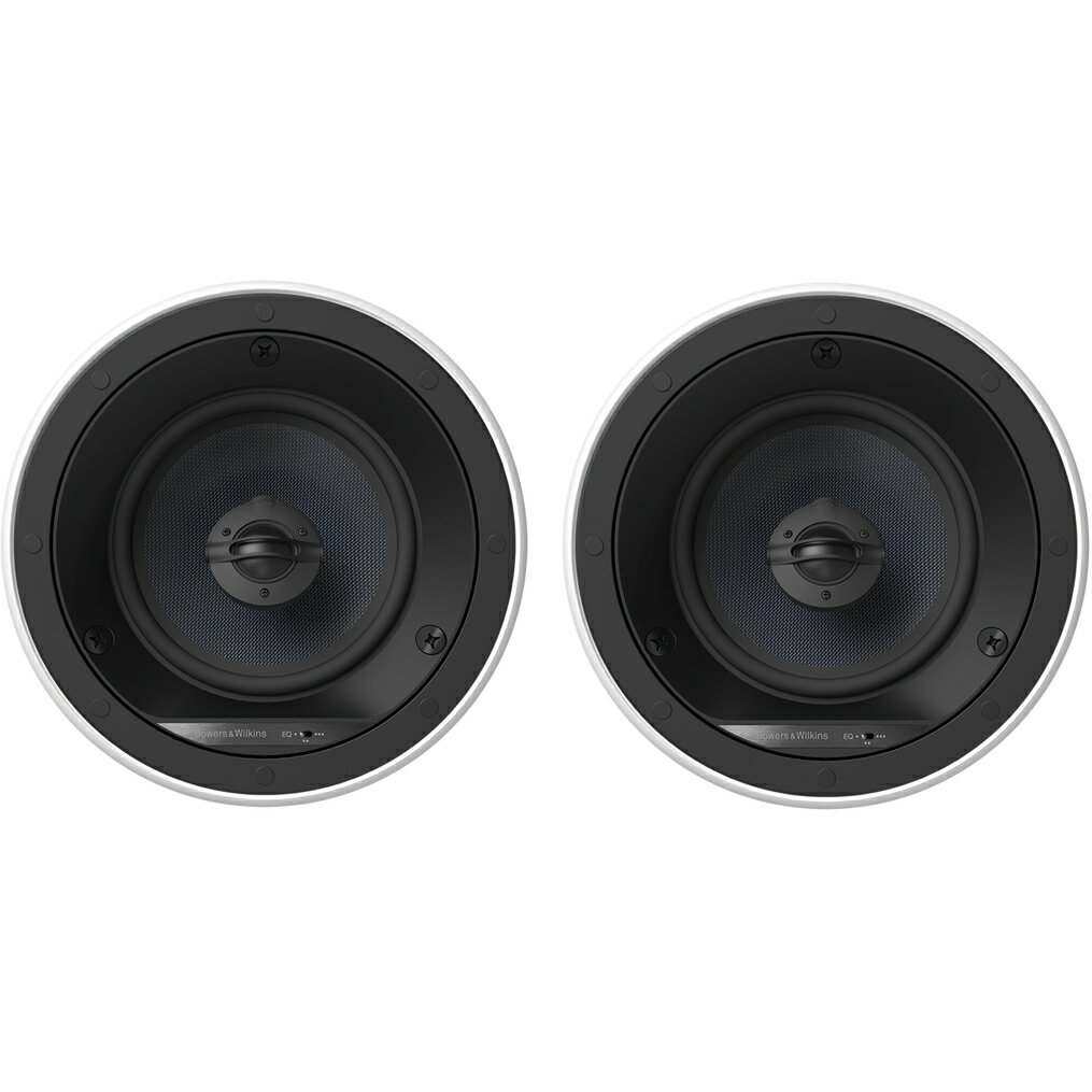 B&W CCM663RD フレキシブルシリーズの奥行を抑えた2ウェイ・インシーリング・スピーカー Technical Specifi cations Description:2-way in-ceiling system Drive Units:1x Φ25mm (1 in) Nautilus(TM) swirl loaded aluminium dome tweeter 1xΦ150mm (6 in) blue Kevlar(R) cone bass/midrange Frequency range (-6dB):35Hz - 50kHz Recommended Amplifi er Power:25W - 100W Sensitivity:86dB (2.83V, 1m) Nominal Impedance:8Ω (4.8Ω minimum) Frame:Φ240mm (9.4 in) Cut-out:Φ202mm (8 in) Depth behind surface:92mm (3.6 in) Protrusion:7mm (0.3 in) Net weight:2.3kg (5 lb) Pre-mount Kit:PMK C6 Back Box:BB6W or BB125C