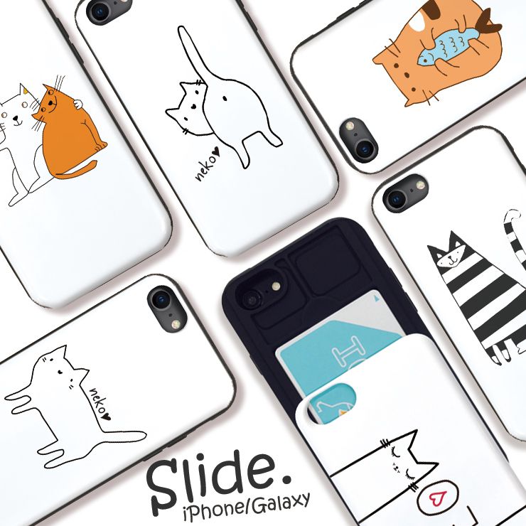 iPhone12/12Pro ケース iPhone 11 pro max XR XSMax ケース iPhoneSE(第2世代)ケース ICカード 背面収納 スライド収納 スマホケース 耐衝撃 おしゃれ ネコ 猫 猫だらけ 愛猫家 韓国 ペア 可愛い 選べる10デザイン