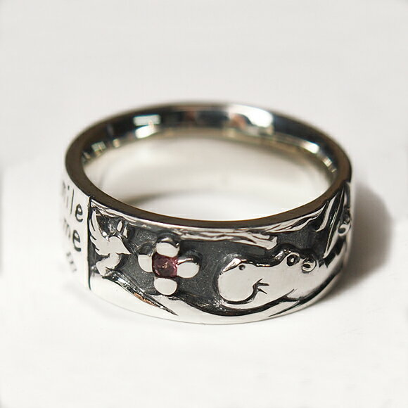 moge(モゲ) シルバーアクセサリー ラブレター —小鳥とカバ— シルバーリング ピンクトルマリン 8mm [mo-R-018] アクセサリー作家・山口光司さんの手作りアクセサリー・ハンドメイドジュエリー・ペアリング・指輪 動物 アニマル メンズ レディース 日本製 国産