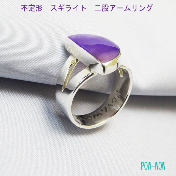 スギライト シルバーリング 平うち 2又アーム レディース スージャライト アフリカ産出 【10~30号】【受注製作】 ユニークカット スギライトの深みのあるムラサキが目を引く、個性的な手作りシルバーリングが完成しました。天然石の魅力を引き立てるシンプルなデザインはパウワウRT銀細工師ならでは!スギライトの綺麗な色に吸い込まれそう★ 【受注製作ご希望の場合】 ※10号〜30号までで、ご希望のサイズをプルダウンにてお選びくださいませ。 ※21号〜25号をご希望の場合は、+1000(29000)で、 26号〜30号をご希望の場合は、+2800(30800)で、 それぞれお作りいたしますのでよろしくお願いいたします。 ご注文後こちらで金額修正いたしますので予めご了承くださいませ。 ※下記のスギライトを使用してお作りいたします。 約9×16.1mm 約4.65cts ※画像7枚目のスギライト 約8.8×15.8mmは売り切れです。 ※工法上(銀地金からダイレクトに手作りのため)、全く同じ大きさ(幅)、形のリングは作ることができませんが、画像とニュアンスは同じになるように最善を尽くしますので宜しくお願いいたします。 ※ご注文頂き、こちらでご入金確認後、製作に取り掛からせていただきます。約2~3週間前後でこちらより発送いたしますので宜しくお願いいたします。 ※代金引換及びご注文後のキャンセルはお受けできませんので予めご了承くださいませ。 【現品商品のデータ】 ■サイズ 約15.3号■最大幅 約17.5mm■最大厚み 約4.8mm■最小幅 約5.8mm■アーム部の厚み 約1.3mm■スギライト約9×16.1mm※サイズ変更不可 他の代官山銀細工工房発 新作 天然石付シルバーリング はこちら。 天然石 ルースやアクセサリーを 石名別で探すもご覧下さいませ。 ※撮影条件やお客様のモニターによっては 画像の色が実際のものと 多少異なって見える場合がございますので あらかじめご了承下さい。 ギフトラッピング 無料/有料はコチラ天然石スギライトシルバーリング(指輪)とても綺麗な色の不定形スギライトにウットリ!パウワウRT銀細工師のハンドメイド(手作り)