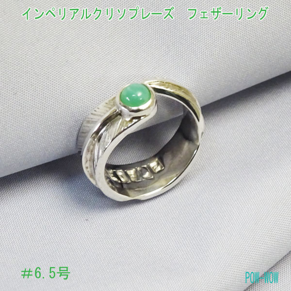 指輪 レディース クリソプレーズ リング インペリアル クリソプレーズ ピンキーリング フェザーリング シルバー イーグル ハンドメイド 手作り 羽 オーバーレイ工法【 6.5号 在庫1】【1号〜20号まで受注製作】