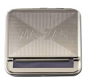 サイズ:長さ83×幅92×高さ25mm 本体重量:122g 素材・材質:金属 原産国:フランス 対応サイズ:長さ69~70mmのレギュラーサイズの巻紙 蓋を開け、布にたばことレギュラーサイズの紙をセットし、蓋を閉じると同時にたばこが巻かれて出てくる道具。ジーンズのヒップのポケットに収まりやすいスキットル型