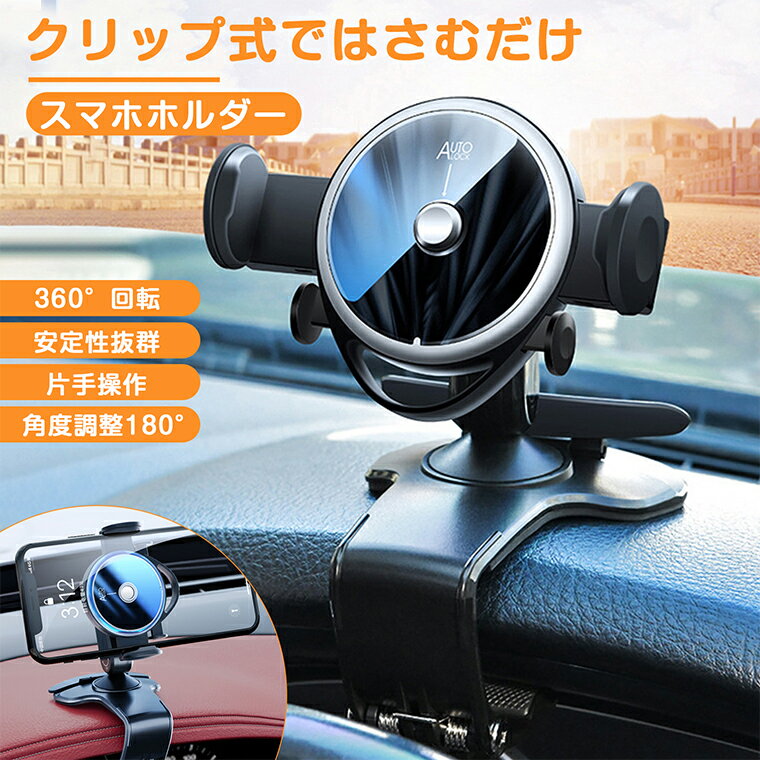 \★更なる安定/車載ホルダー クリップ スマホホルダー 車 クリップ式 ダッシュボード 最強安定 360度回転 滑り止め 手帳型ケース対応 スマホ 車載ホルダー クリップ式 スマホスタンド 車載 角度調整 強力クリップ 4.7-6.5インチ 縦横向き サンバイザー 片手操作