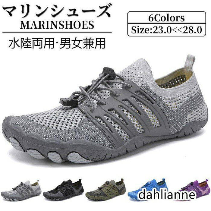 アクアシューズ 男女兼用 軽量 速乾 スリッポン 通気性 水陸両用 五本指 春夏秋 アウトドア ビーチ スイム 沢登り ハイキング スポーツ ラバーソール 排水性