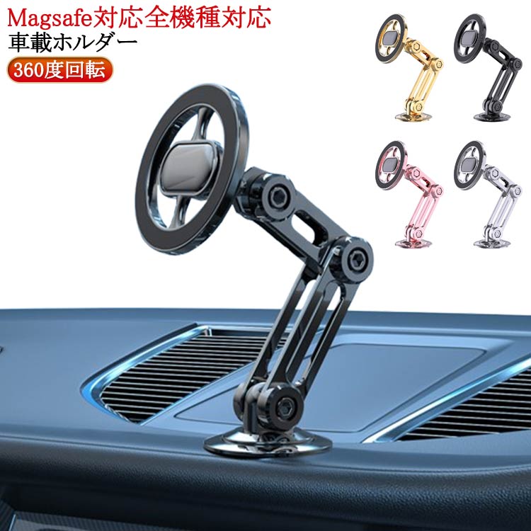 360度回転 車 スマホホルダー magsafe車載 片手操作 360°回転 マグネット 携帯スタンド 車載ホルダー 折り畳み 長さ伸縮可折りたたみ式 高級合金素材 車載ホルダー スマホスタンド 多機種対応 全車種対応 汎用 送料無料