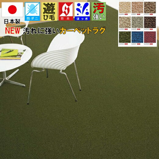 ラグ ラグマット 3畳 4畳 四畳 190×290 はっ水 撥水 東リ 日本製 ナイロン カーペット じゅうたん 絨毯 防汚 防臭 防ダニ 抗菌 防炎 制電 ループ ダイニング 丸巻き TOLI 【グレース190×290】 約4畳 190×290cm