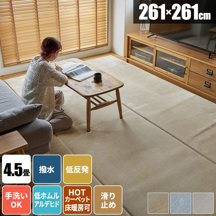 【今すぐ使える1000円クーポン配布中】ラグ 低反発 低反発ラグ 大判 大きい ラグマット 冬用ラグ 洗える 接着剤不使用 じゅうたん 北欧 おしゃれ はっ水 ラグカーペット 滑り止め付き 厚手 毛足が短い 手洗いで洗濯 絨毯 無地 261×261 洗えるラグ オールシーズン