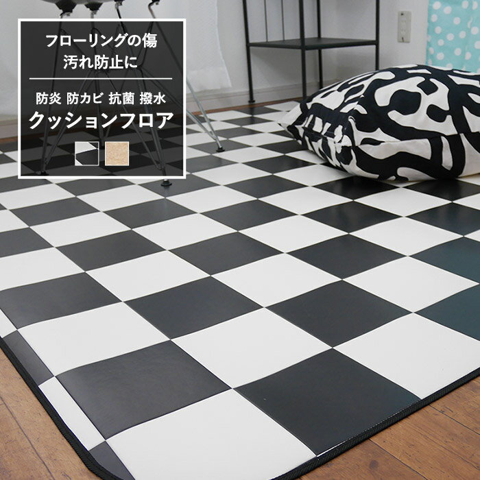 [P10倍 4日20時〜4時間+2000円OFFクーポン]クッションフロア ダイニングラグ ラグマット ラグ マット オニックス チェッカー ブラック E8138/E8082/182×300cm[3帖/3畳]/防炎 防カビ 抗菌 撥水 拭ける おしゃれ キッチン マット 日本製 フローリングの傷 汚れ防止にも JQ