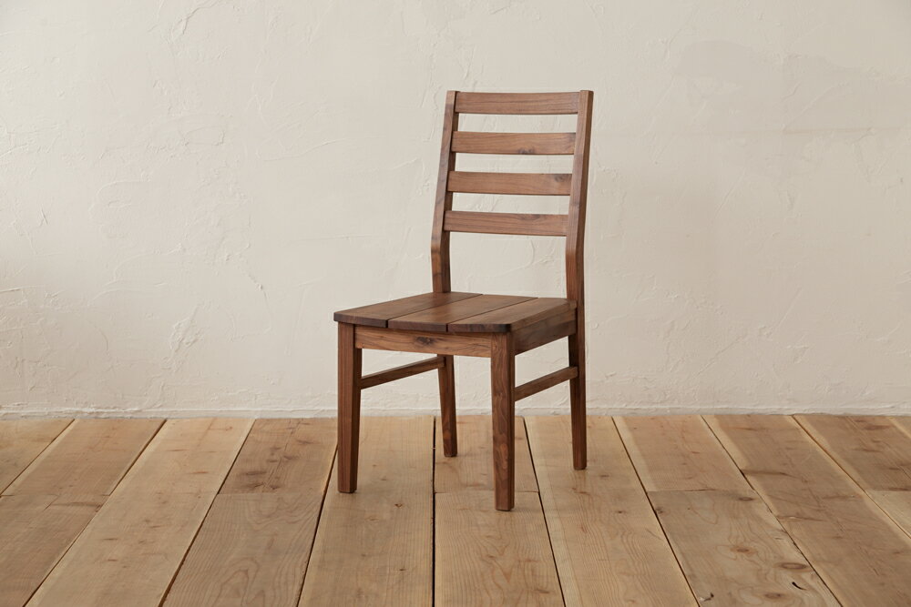 [オーズ3/板座面チェア/ウォールナット]天然木無垢材を使用した木目と木の質感が美しいシンプルスタイル。体にフィットして支えてくれるフォルム、安定感のあるデザイン、PVCと板座面から選べるバリエーションも嬉しいダイニングチェア&ベンチです。