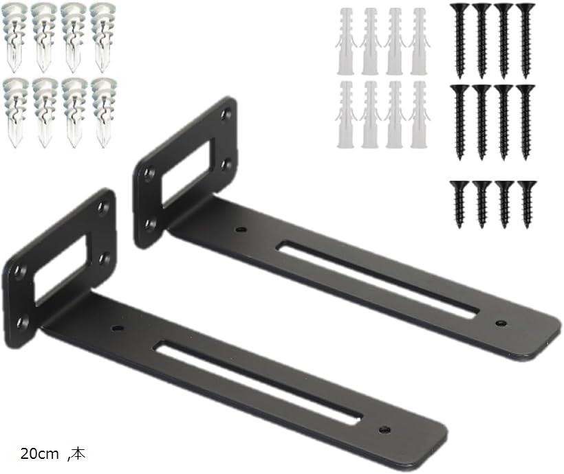 特許取得商品 長さ:20cm 厚さ3.5mm軽量タイプ 棚受け金具 隠し棚受け 高耐荷重 L字金具 アイアンブラケット 目立たない棚受け 棚支え2個セット 本 (ブラック, 20cm)