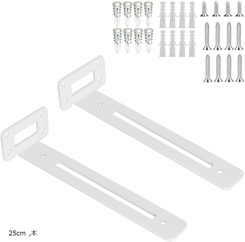 特許取得商品 長さ:25cm 厚さ3.5mm軽量タイプ 棚受け金具 白 隠し棚受け 高耐荷重 L字金具 アイアンブラケット 目立たない棚受け 棚支え2個セット ホワイト 本 (ホワイト, 25cm)