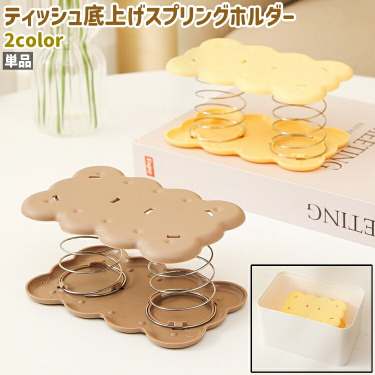送料無料 ティッシュ底上げスプリングホルダー 単品 ばねホルダー 支え台 スプリング バネ シンプル ティッシュケース ティッシュボックス ティッシュ 底上げ 押し上げ かさ上げ 茶色 黄色