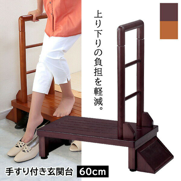 手すり付玄関台 幅60cm TAN-889-60 玄関 手すり付き踏み台 介護用品 手すり付きステップ台 手すり玄関台 手すり踏み台 手摺付き踏み台 段差解消 踏み台 木製 手すり付き 横倒れ防止 支え付き 玄関ステップ TAN-889 入口 出入口 介護 老人 転倒防止 手摺 玄関置台 玄関踏台