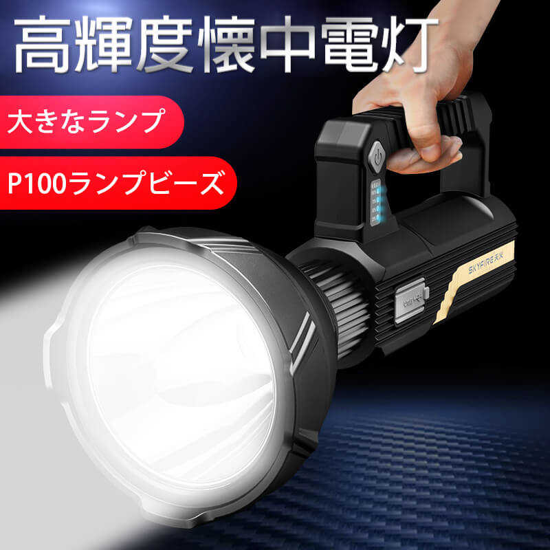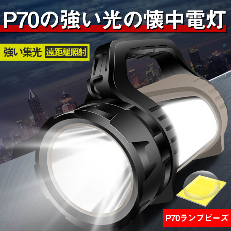 お買い物マラソン【P5倍】LEDスーパーライト P100 夜道 散歩 アウトドア 防犯 防災 強力 ミニ 照射距離1800m 台風 COBサイドライト 災害 キャンプ アウトドア 防災グッズ ライト 散歩 強力 明るい 懐中電灯 LED 電池式 夜釣 防災用品 学校 自治体 災害