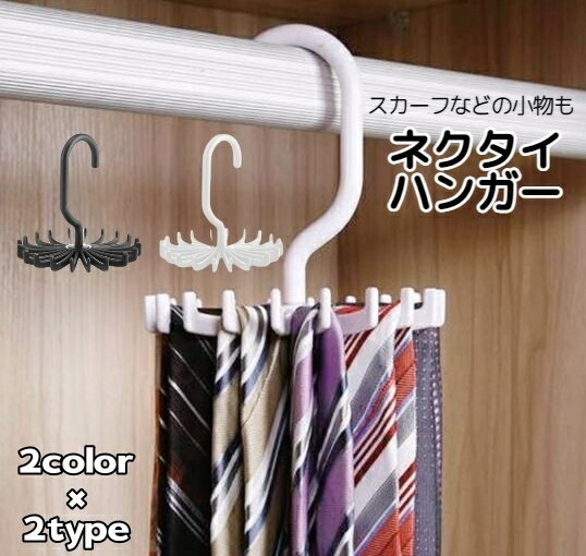 送料無料 ネクタイ用ハンガー ネクタイハンガー ベルト用ハンガー スカーフハンガー くるくる回る 360度回転 省スペース 整理整頓 18本収納 20本収納 収納ハンガー 収納グッズ 収納アイテム 便利グッズ 便利アイテム クローゼット収納 ホワイト 白 ブラック 黒