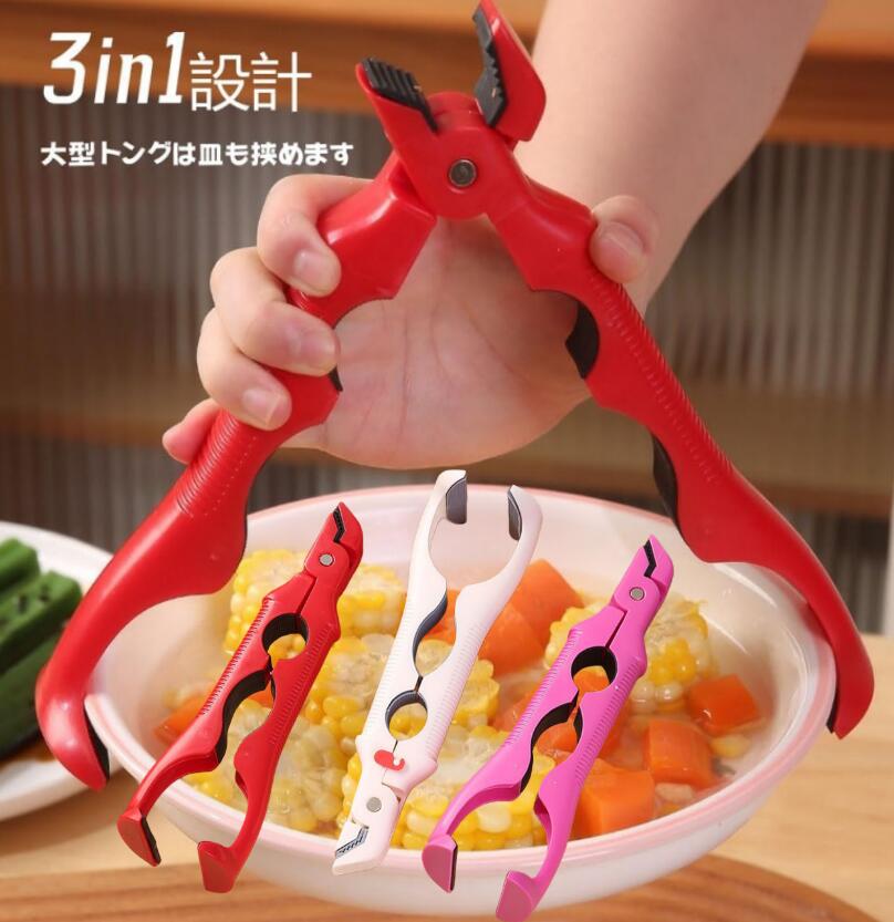 調理トング 火傷防止クリップ 多機能 3in1 鍋つかみ 栓抜き 蓋開け機能付き 滑り防止 食器を傷つけない 調理器具 料理道具 キッチン用