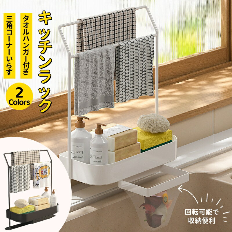 【最大2000OFF】スポンジホルダー タオル掛け 三角コーナーいらず ふきんホルダー スポンジラック 1台2役 最新型 排水トレイ付き スポンジ置 洗剤置 たわし置き 水切りホルダー シンク ゴミ受け キッチン 生ゴミ処理 水切りネット50枚付 洗面所/キッチン収納