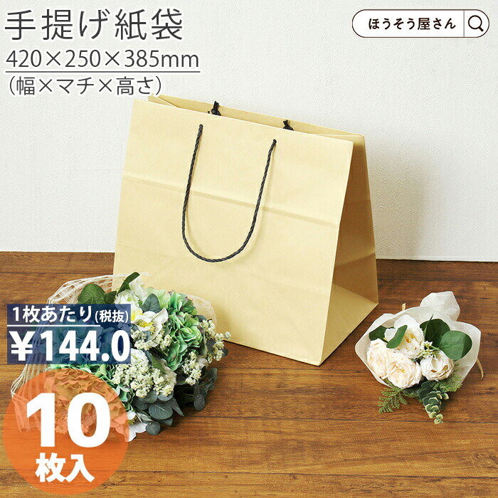 【27日まで★ポイント7倍&クーポン】 紙袋 底ボール 花材 花用 手提袋 BM 10枚手提げ マチ広 仕出し お弁当 おしゃれ 収納 高品質 手提げ袋 シンプル 業務用 軽量 テイクアウト 持ち運び ギフト プレゼント イベント 入学 新学期