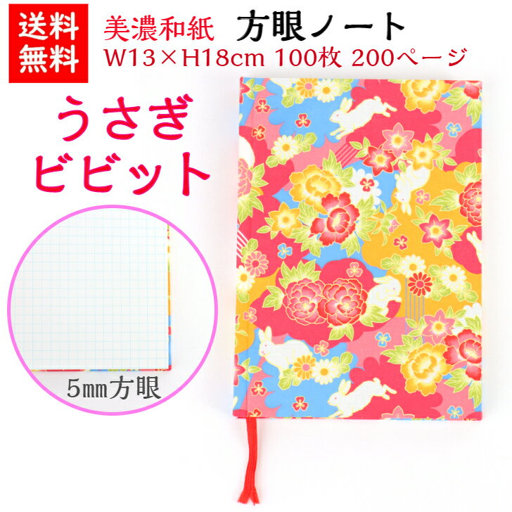 【送料無料】 美濃和紙 ハンド ダイアリー 笑emi うさぎ ビビット ノート ブック B6 方眼 100枚 200ページ 手帳 石川紙業 友禅和紙 友禅 和紙 和柄 モダン 手作り かわいい 誕生日 オフィス ビジネス こだわり 新学期 新生活 ギフト プレゼント 兎 ウサギ 文房具 文具