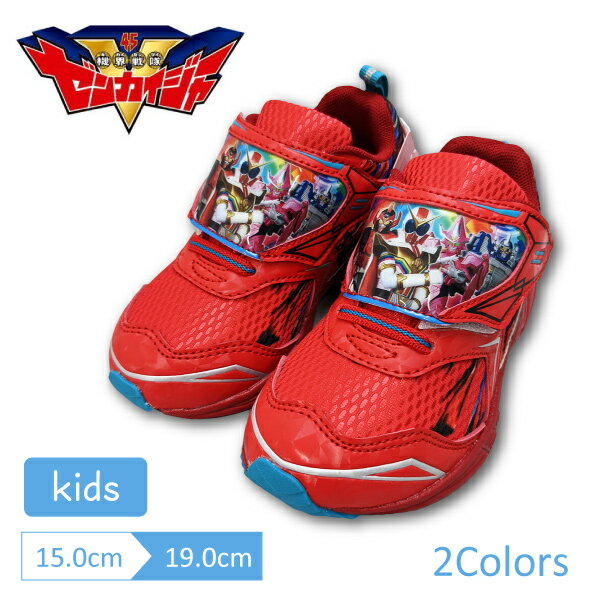 【商品情報】 大人気!テレビ番組「ゼンカイジャー」のかっこいいスニーカーが登場!ゼンカイジャーと一緒に楽しくおでかけしよう♪ 左右がわかりやすく、脱ぎ履きしやすい大きなマジックテープ式 カラー:レッド、ブルー(2カラー) サイズ:15.0cm、16.0cm、17.0cm、18.0cm、19.0cm(5サイズ) 素材:合成皮革・合成底 原産国:中国 【配送方法】 お買い物金額3,980円以上で送料無料!!(一部地域を除く) 他商品とも同梱可能です☆ ◆注意事項 運送上、靴箱に傷や凹みがある場合がございます。 商品パッケージに、凹みや擦り傷がある場合がございます。 商品により、靴箱ではなく梱包袋に入れて発送する場合がございます。 靴箱の破損・汚れ等による返品・交換は承っておりません。あらかじめご了承ください。 商品写真はできる限り実物の色に近づけるよう作成しておりますが、実際の色味とは若干異なって見える場合がございます。 また、お客様が使用する機器の設定やお部屋の照明によっても同様に実際の色味とは異なって見える場合がございます。