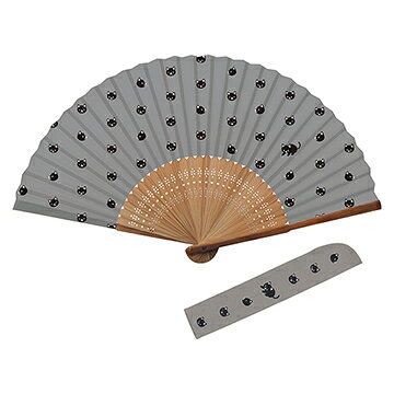 【これからの季節の必須アイテム】新日本カレンダーアニマルフェイス(ネコ)シリーズクロネコ(7寸<21cm>30間・扇子袋付き)No.651扇子【数量限定】