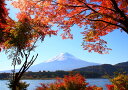 絵画風 壁紙ポスター (はがせるシール式) もみじ富士 紅葉と富士山 山中湖 秋景色 キャラクロ FJS-014A2 (A2版 594mm×420mm) <日本製> ウォールステッカー お風呂ポスター
