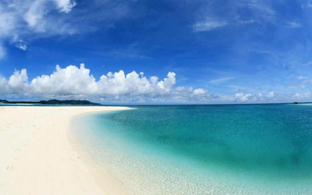 絵画風 壁紙ポスター (はがせるシール式) 爽快な海と空と砂浜のビーチ マヨルカ島 スペイン 海 キャラクロ BCH-056W1 (ワイド版 921mm×576mm) <日本製> ウォールステッカー お風呂ポスター