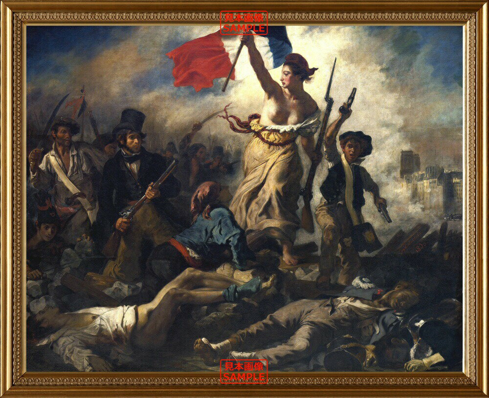 絵画風 壁紙ポスター (はがせるシール式) 【フルサイズ版】 ウジェーヌ ドラクロワ 民衆を導く自由の女神 1830年 ルーヴル美術館 【額縁印刷/トリックアート】 キャラクロ K-DLC-001SG2 (594mm×484mm) <日本製> ウォールステッカー お風呂ポスター